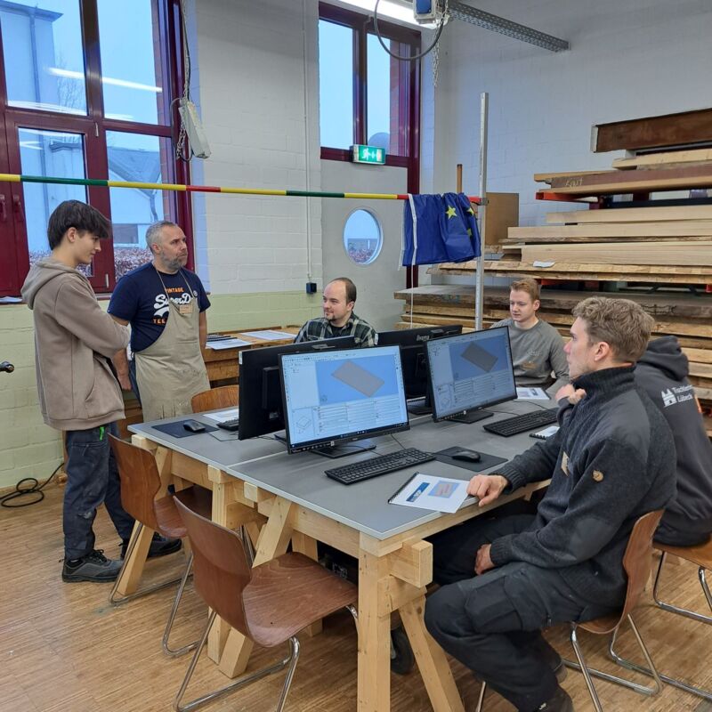 Im europäischen Austausch haben die Lehrkräfte Ziele und Inhalte von Lehrplänen mit digitalem Schwerpunkt entwickelt, die für zukünftige Tischler zum Standartprogramm des berufsschulischen Fachunterrichts gehören sollten. Diese Vorschläge werden den zuständigen Institutionen der Länder vorgestellt.