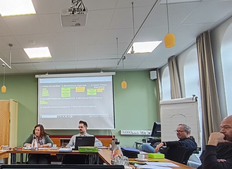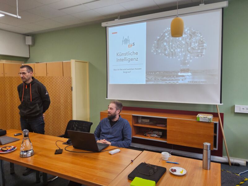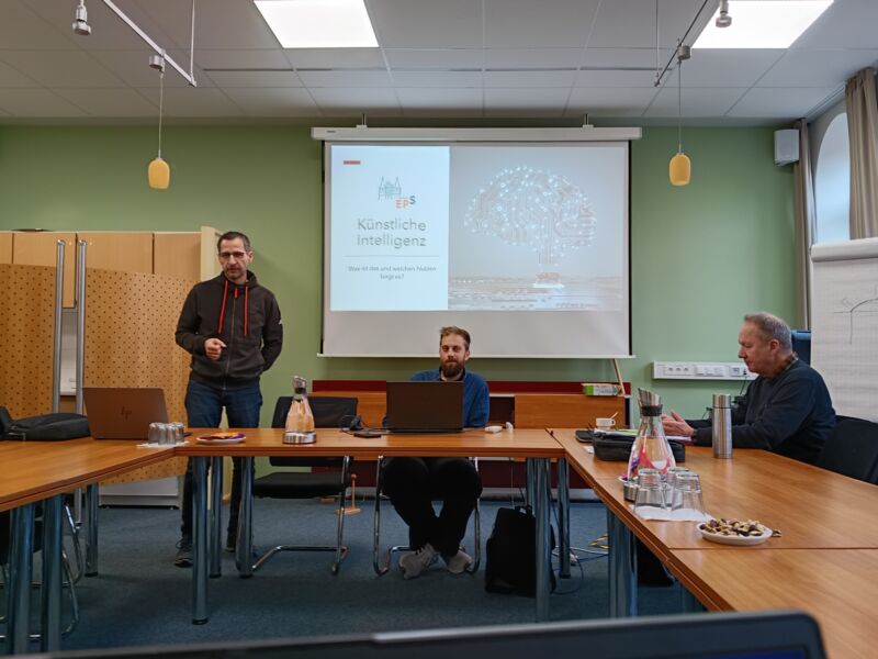 Nach dem Unterrichtsbesuch folgte die schulinterne Fortbildung zum Thema „Was ist KI – Einsatzmöglichkeiten für die Unterrichtsvorbereitung und den Unterricht“, gestaltet von Thomas Gatz und Kenneth Johannesson.