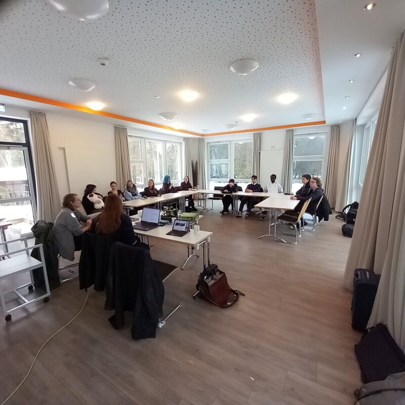 Wie auch im letzten Jahr ging es im November für die Schülervertretung für zwei Tage in die Jugendherberge Bad-Malente. Mit guter Laune und viel Motivation starteten Frau Ziegler, Frau Baumgarten und Herr Runge mit einer Kennenlernphase. Anschließend arbeiteten wir intensiv in unseren Arbeitsgruppen, bei denen es unter anderem um ein Sommerfest, das Wohlbefinden der Schülerinnen und Schüler, ein Pinboard, Aktionen zu Nikolaus und Valentinstag, eine Sammelaktion, eine Tauschbörse und um ein neues Design der Schulkleidung ging. Am Abend hat uns außerdem Herr Walther besucht und gemeinsam mit Frau Ziegler von Europaaktivitäten unserer Schule berichtet. Die beiden Europakoordinatoren regten dabei an, dass wir als Europaschule mehr Präsenz zeigen müssten. Wir machten uns daher gemeinsam Gedanken, wie wir in unsere Projekte, wie beispielsweise dem Sommerfest, das Thema Europa integrieren können. Nach einem sehr leckerem Abendessen spielten wir noch ein paar Runden Werwolf und genossen anschließend unsere Freizeit, bevor wir schlafen gingen.